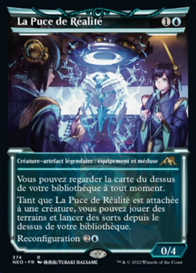 | Rules | You may look at the top card of your library any time. As long as The Reality Chip is attached to a creature, you may play lands and cast spells from the top of your library. Reconfigure (: Attach to target creature you control; or unattach from a creature. Reconfigure only as a sorcery. While attached, this isn't a creature.) |