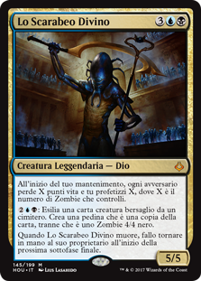 | Rules | At the beginning of your upkeep, each opponent loses X life and you scry X, where X is the number of Zombies you control. : Exile target creature card from a graveyard. Create a token that's a copy of it, except it's a 4/4 black Zombie. When The Scarab God dies, return it to its owner's hand at the beginning of the next end step. |