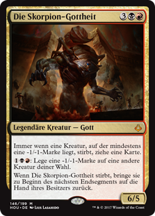 | Rules | Whenever a creature with a -1/-1 counter on it dies, draw a card. : Put a -1/-1 counter on another target creature. When The Scorpion God dies, return it to its owner's hand at the beginning of the next end step. |