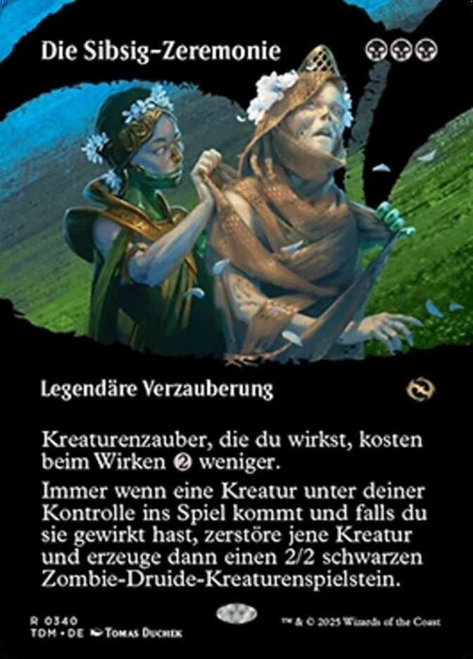 | Rules | Creature spells you cast cost less to cast. Whenever a creature you control enters, if you cast it, destroy that creature, then create a 2/2 black Zombie Druid creature token. |