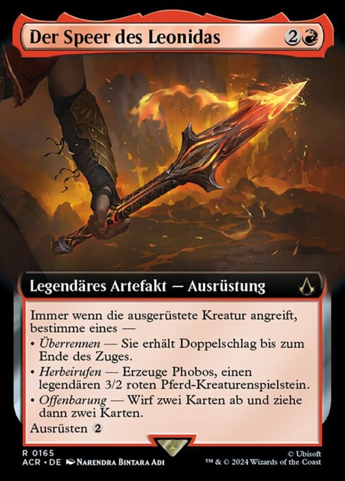 | Rules | Whenever equipped creature attacks, choose one — • Bull Rush — It gains double strike until end of turn. • Summon — Create Phobos, a legendary 3/2 red Horse creature token. • Revelation — Discard two cards, then draw two cards. Equip |