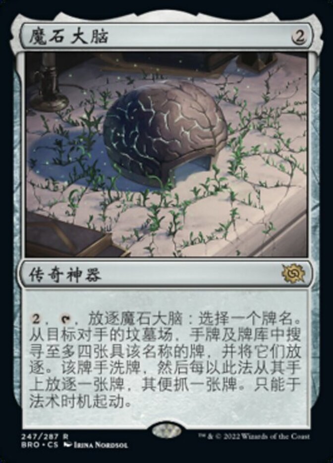 | Rules | , , Exile The Stone Brain: Choose a card name. Search target opponent's graveyard, hand, and library for up to four cards with that name and exile them. That player shuffles, then draws a card for each card exiled from their hand this way. Activate only as a sorcery. |