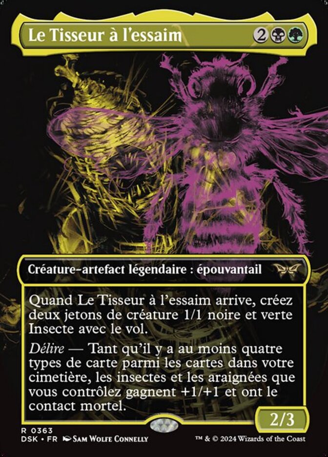 | Rules | When The Swarmweaver enters, create two 1/1 black and green Insect creature tokens with flying. Delirium — As long as there are four or more card types among cards in your graveyard, Insects and Spiders you control get +1/+1 and have deathtouch. |