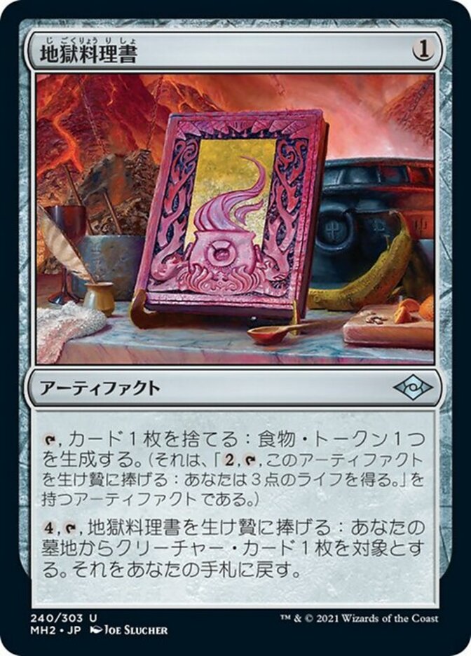 | Rules | , Discard a card: Create a Food token. (It's an artifact with ", , Sacrifice this artifact: You gain 3 life.") , , Sacrifice The Underworld Cookbook: Return target creature card from your graveyard to your hand. |