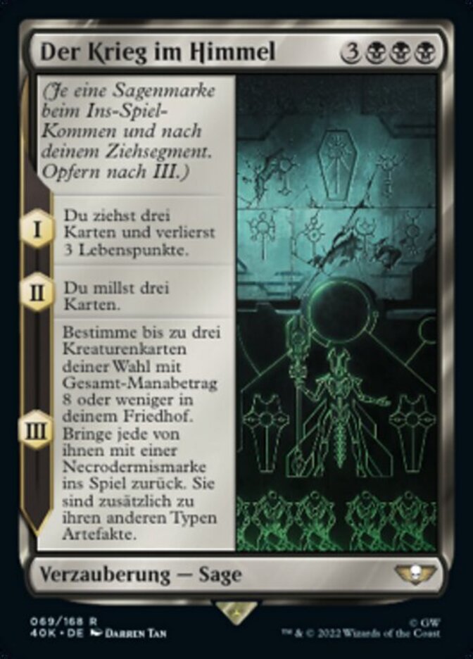 | Rules | (As this Saga enters and after your draw step, add a lore counter. Sacrifice after III.) I — You draw three cards and you lose 3 life. II — Mill three cards. III — Choose up to three target creature cards with total mana value 8 or less in your graveyard. Return each of them to the battlefield with a necrodermis counter on it. They're artifacts in addition to their other types. |