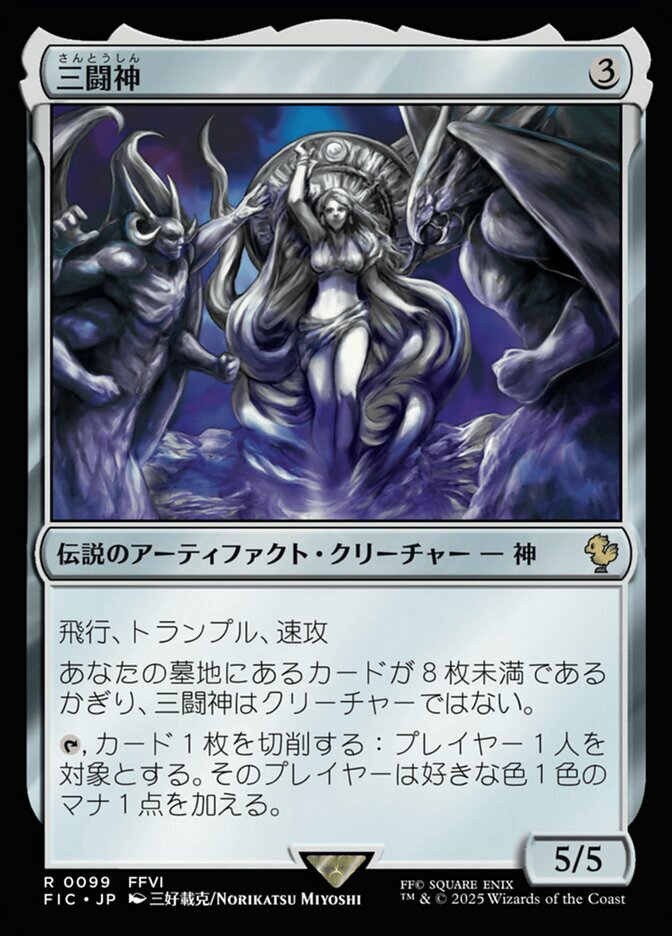 | Rules | Flying, trample, haste As long as there are fewer than eight cards in your graveyard, The Warring Triad isn't a creature. , Mill a card: Target player adds one mana of any color. |