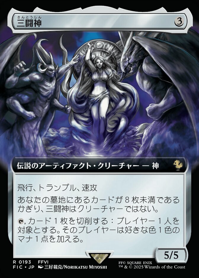 | Rules | Flying, trample, haste As long as there are fewer than eight cards in your graveyard, The Warring Triad isn't a creature. , Mill a card: Target player adds one mana of any color. |