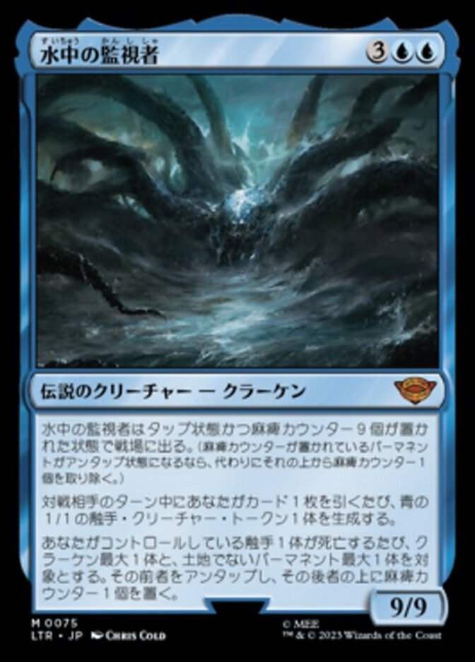 | Rules | The Watcher in the Water enters the battlefield tapped with nine stun counters on it. (If a permanent with a stun counter would become untapped, remove one from it instead.) Whenever you draw a card during an opponent's turn, create a 1/1 blue Tentacle creature token. Whenever a Tentacle you control dies, untap up to one target Kraken and put a stun counter on up to one target nonland permanent. |