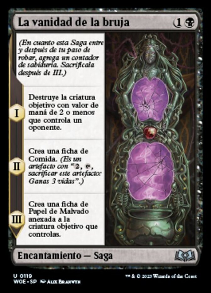 | Rules | (As this Saga enters and after your draw step, add a lore counter. Sacrifice after III.) I — Destroy target creature an opponent controls with mana value 2 or less. II — Create a Food token. (It's an artifact with ", , Sacrifice this artifact: You gain 3 life.") III — Create a Wicked Role token attached to target creature you control. |