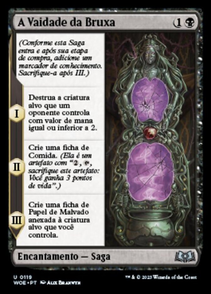 | Rules | (As this Saga enters and after your draw step, add a lore counter. Sacrifice after III.) I — Destroy target creature an opponent controls with mana value 2 or less. II — Create a Food token. (It's an artifact with ", , Sacrifice this artifact: You gain 3 life.") III — Create a Wicked Role token attached to target creature you control. |