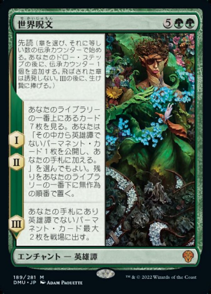 | Rules | Read ahead (Choose a chapter and start with that many lore counters. Add one after your draw step. Skipped chapters don't trigger. Sacrifice after III.) I, II — Look at the top seven cards of your library. You may reveal a non-Saga permanent card from among them and put it into your hand. Put the rest on the bottom of your library in a random order. III — Put up to two non-Saga permanent cards from your hand onto the battlefield. |