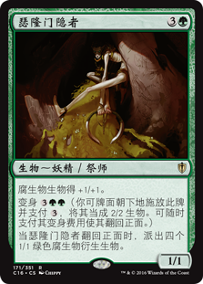 | Rules | All Saprolings get +1/+1. Morph (You may cast this card face down as a 2/2 creature for . Turn it face up any time for its morph cost.) When Thelonite Hermit is turned face up, create four 1/1 green Saproling creature tokens. |