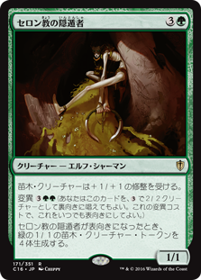 | Rules | All Saprolings get +1/+1. Morph (You may cast this card face down as a 2/2 creature for . Turn it face up any time for its morph cost.) When Thelonite Hermit is turned face up, create four 1/1 green Saproling creature tokens. |