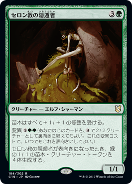 | Rules | All Saprolings get +1/+1. Morph (You may cast this card face down as a 2/2 creature for . Turn it face up any time for its morph cost.) When Thelonite Hermit is turned face up, create four 1/1 green Saproling creature tokens. |