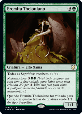 | Rules | All Saprolings get +1/+1. Morph (You may cast this card face down as a 2/2 creature for . Turn it face up any time for its morph cost.) When Thelonite Hermit is turned face up, create four 1/1 green Saproling creature tokens. |