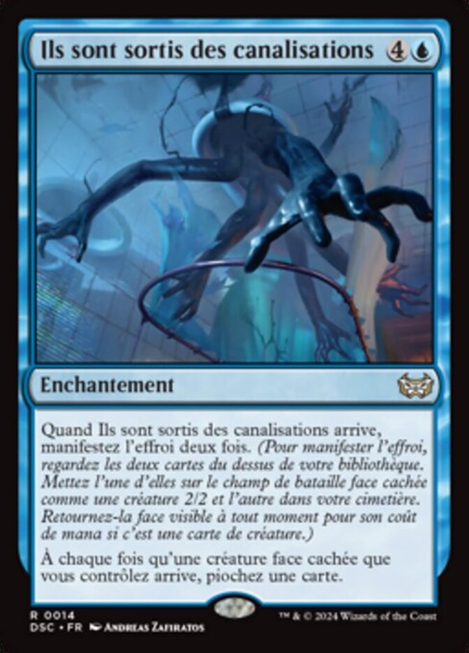 | Rules | When They Came from the Pipes enters, manifest dread twice. (To manifest dread, look at the top two cards of your library. Put one onto the battlefield face down as a 2/2 creature and the other into your graveyard. Turn it face up any time for its mana cost if it's a creature card.) Whenever a face-down creature you control enters, draw a card. |