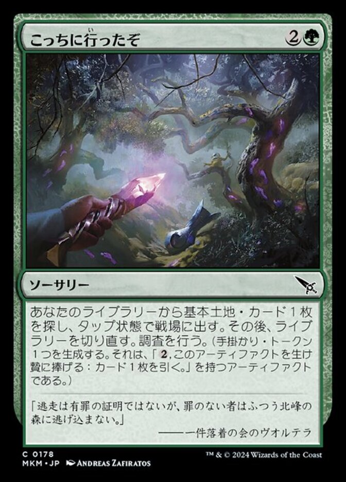| Rules | Search your library for a basic land card, put it onto the battlefield tapped, then shuffle. Investigate. (Create a Clue token. It's an artifact with ", Sacrifice this artifact: Draw a card.") |