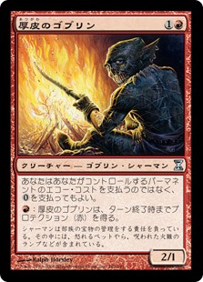 | Rules | You may pay rather than pay the echo cost for permanents you control. : Thick-Skinned Goblin gains protection from red until end of turn. |