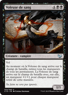 | Rules | Flying As Thief of Blood enters the battlefield, remove all counters from all permanents. Thief of Blood enters the battlefield with a +1/+1 counter on it for each counter removed this way. |