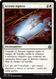 Rules When Thopter Arrest enters the battlefield, exile target artifact or creature an opponent controls until Thopter Arrest leaves the battlefield.