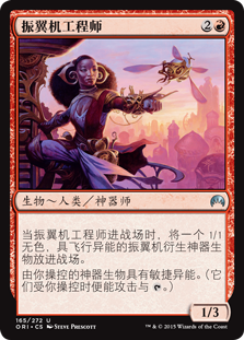 | Rules | When Thopter Engineer enters the battlefield, create a 1/1 colorless Thopter artifact creature token with flying. Artifact creatures you control have haste. (They can attack and as soon as they come under your control.) |