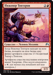 | Rules | When Thopter Engineer enters the battlefield, create a 1/1 colorless Thopter artifact creature token with flying. Artifact creatures you control have haste. (They can attack and as soon as they come under your control.) |