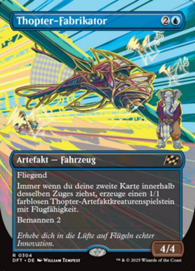 | Rules | Flying Whenever you draw your second card each turn, create a 1/1 colorless Thopter artifact creature token with flying. Crew 2 |