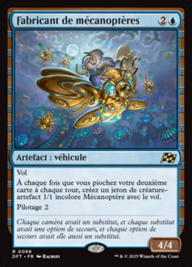 | Rules | Flying Whenever you draw your second card each turn, create a 1/1 colorless Thopter artifact creature token with flying. Crew 2 |
