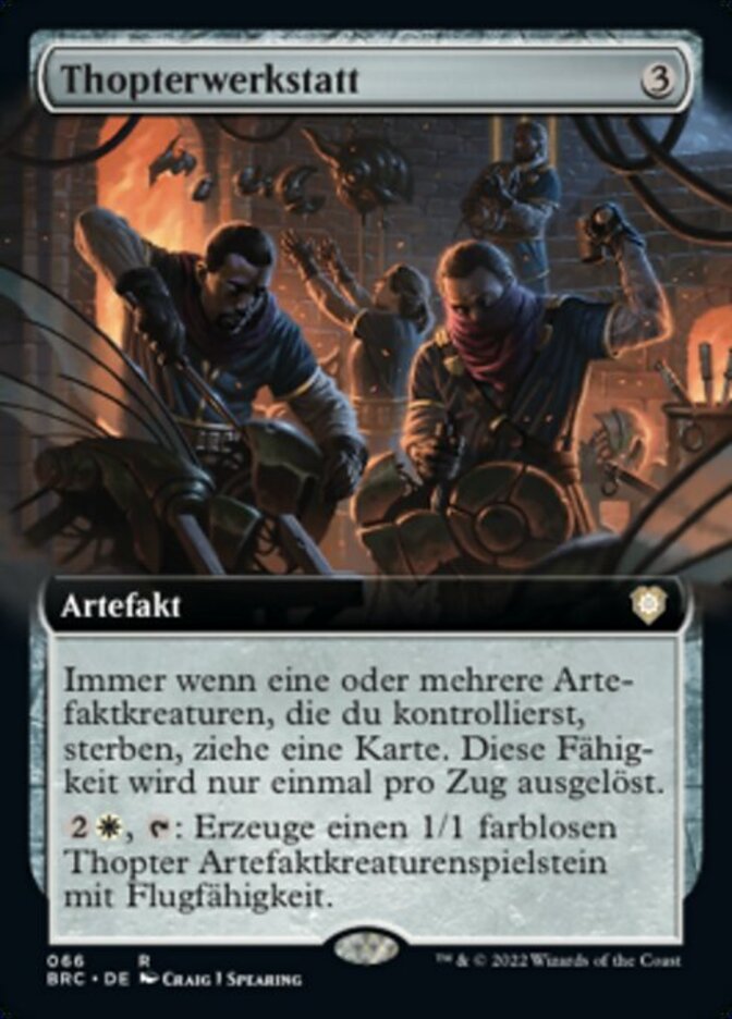 | Rules | Whenever one or more artifact creatures you control die, draw a card. This ability triggers only once each turn. , : Create a 1/1 colorless Thopter artifact creature token with flying. |