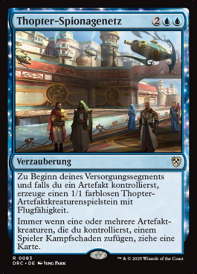 | Rules | At the beginning of your upkeep, if you control an artifact, create a 1/1 colorless Thopter artifact creature token with flying. Whenever one or more artifact creatures you control deal combat damage to a player, draw a card. |