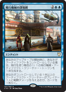 | Rules | At the beginning of your upkeep, if you control an artifact, create a 1/1 colorless Thopter artifact creature token with flying. Whenever one or more artifact creatures you control deal combat damage to a player, draw a card. |