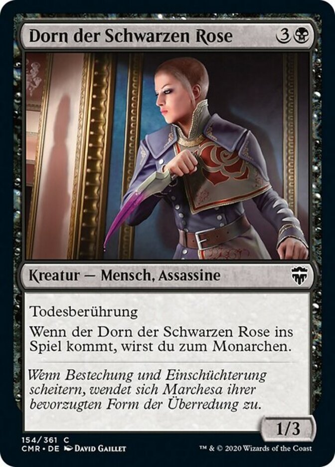 | Rules | Deathtouch When Thorn of the Black Rose enters the battlefield, you become the monarch. |