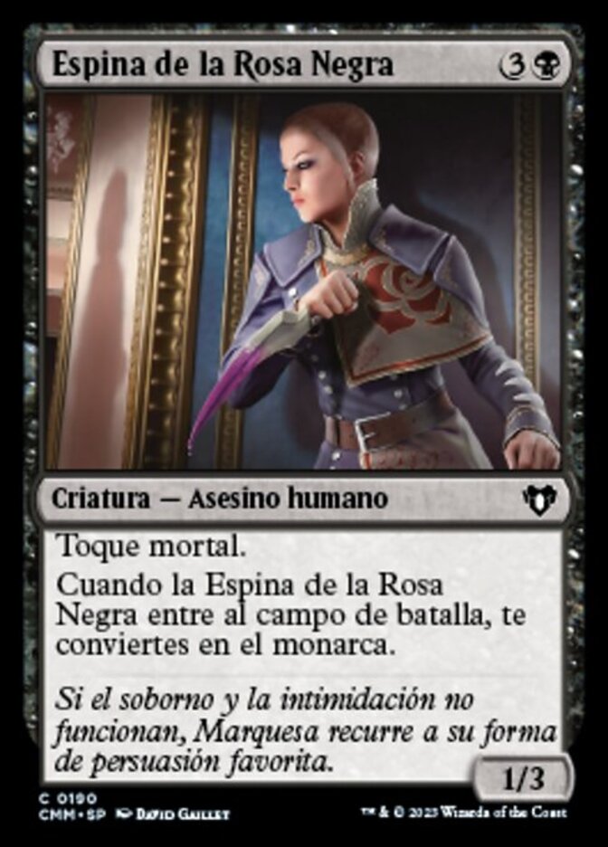 | Rules | Deathtouch When Thorn of the Black Rose enters the battlefield, you become the monarch. |