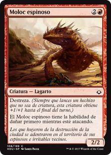 | Rules | Prowess (Whenever you cast a noncreature spell, this creature gets +1/+1 until end of turn.) Thorned Moloch has first strike as long as it's attacking. |