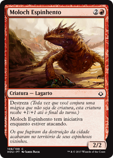 | Rules | Prowess (Whenever you cast a noncreature spell, this creature gets +1/+1 until end of turn.) Thorned Moloch has first strike as long as it's attacking. |