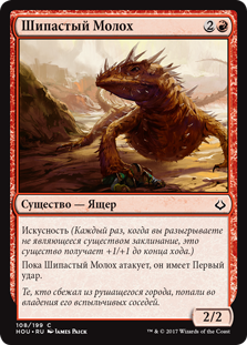 | Rules | Prowess (Whenever you cast a noncreature spell, this creature gets +1/+1 until end of turn.) Thorned Moloch has first strike as long as it's attacking. |