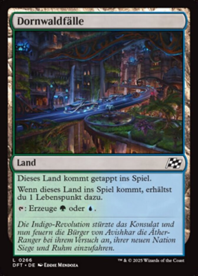 | Rules | Thornwood Falls enters the battlefield tapped. When Thornwood Falls enters the battlefield, you gain 1 life. : Add or . |