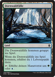 | Rules | Thornwood Falls enters the battlefield tapped. When Thornwood Falls enters the battlefield, you gain 1 life. : Add or . |
