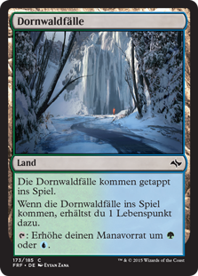 | Rules | Thornwood Falls enters the battlefield tapped. When Thornwood Falls enters the battlefield, you gain 1 life. : Add or . |