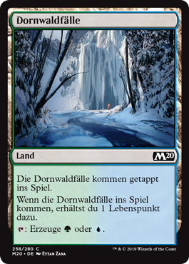| Rules | Thornwood Falls enters the battlefield tapped. When Thornwood Falls enters the battlefield, you gain 1 life. : Add or . |