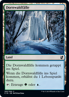 | Rules | Thornwood Falls enters the battlefield tapped. When Thornwood Falls enters the battlefield, you gain 1 life. : Add or . |