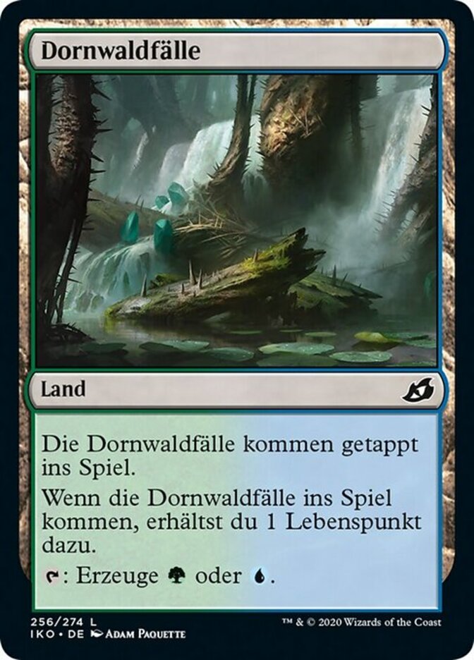| Rules | Thornwood Falls enters the battlefield tapped. When Thornwood Falls enters the battlefield, you gain 1 life. : Add or . |
