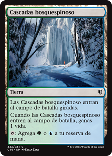 | Rules | Thornwood Falls enters the battlefield tapped. When Thornwood Falls enters the battlefield, you gain 1 life. : Add or . |