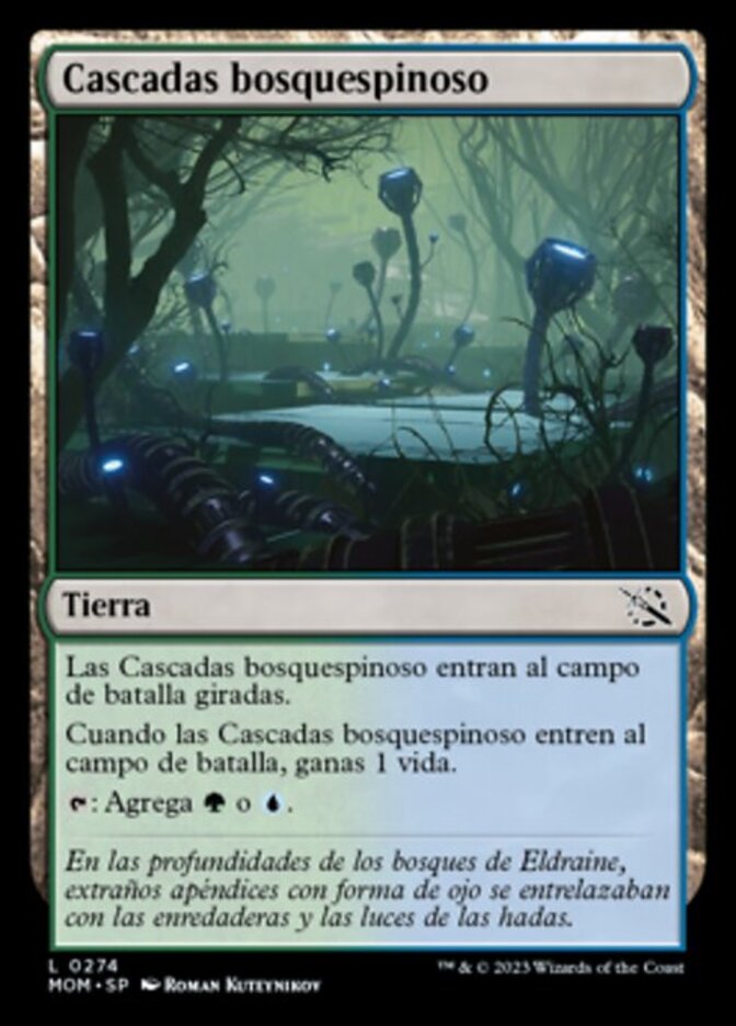 | Rules | Thornwood Falls enters the battlefield tapped. When Thornwood Falls enters the battlefield, you gain 1 life. : Add or . |