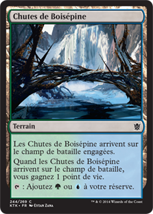| Rules | Thornwood Falls enters the battlefield tapped. When Thornwood Falls enters the battlefield, you gain 1 life. : Add or . |