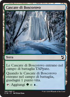| Rules | Thornwood Falls enters the battlefield tapped. When Thornwood Falls enters the battlefield, you gain 1 life. : Add or . |