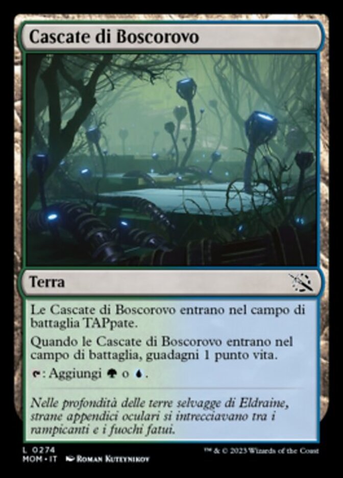 | Rules | Thornwood Falls enters the battlefield tapped. When Thornwood Falls enters the battlefield, you gain 1 life. : Add or . |