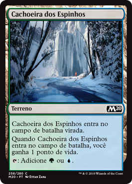 | Rules | Thornwood Falls enters the battlefield tapped. When Thornwood Falls enters the battlefield, you gain 1 life. : Add or . |
