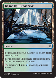 | Rules | Thornwood Falls enters the battlefield tapped. When Thornwood Falls enters the battlefield, you gain 1 life. : Add or . |