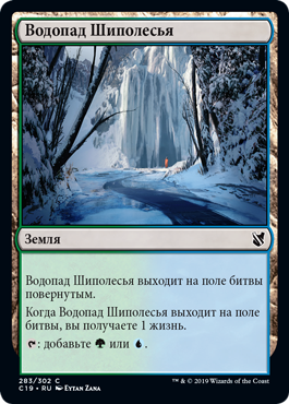| Rules | Thornwood Falls enters the battlefield tapped. When Thornwood Falls enters the battlefield, you gain 1 life. : Add or . |